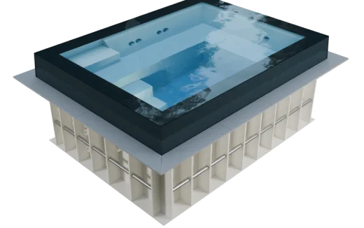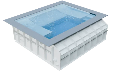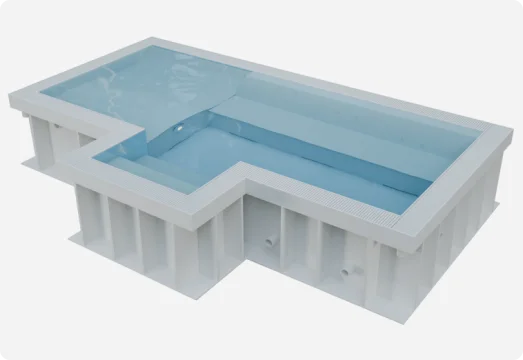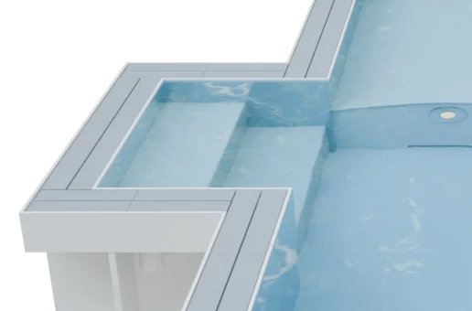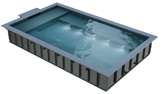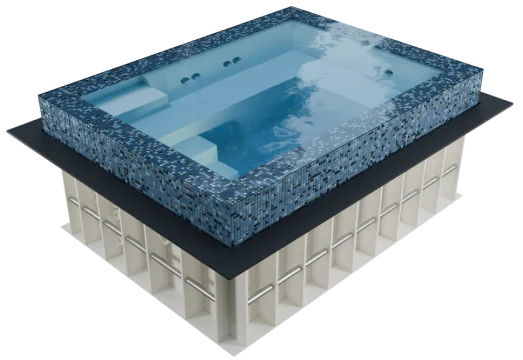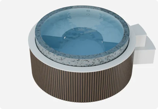 - Ein Wellnesspool kann als separates Modell hergestellt und installiert oder mit einem Schwimmbecken zu einer Einheit kombiniert werden. Große Modelle von Wellnesspools für den gewerblichen Gebrauch können auf Anfrage entworfen und gefertigt werden.