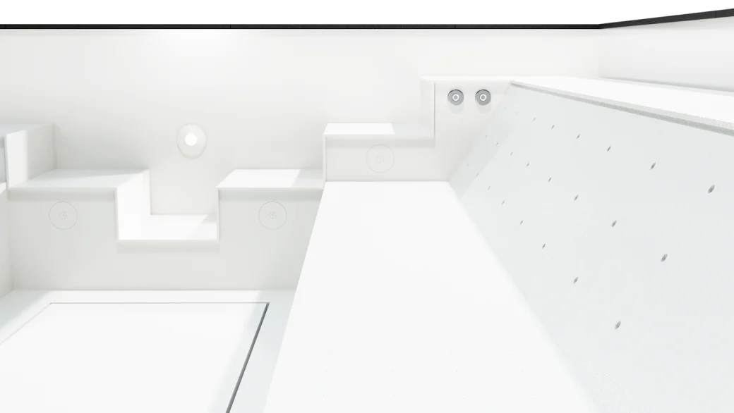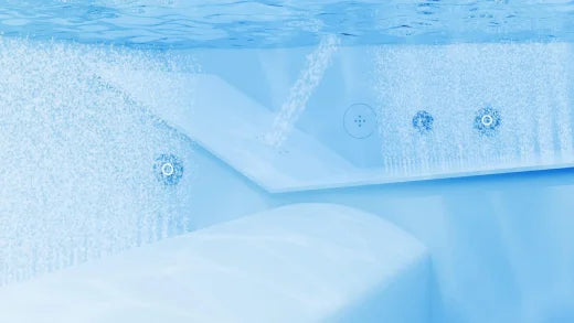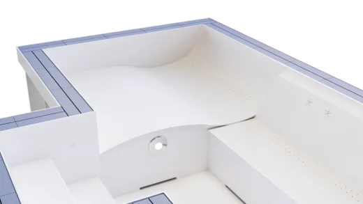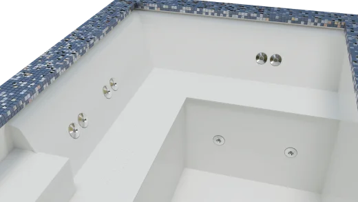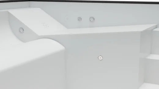 - Die Tiefe des Wellnesspools kann ebenfalls angepasst werden. Verschiedene Tiefen (unebener Boden) sind möglich.
