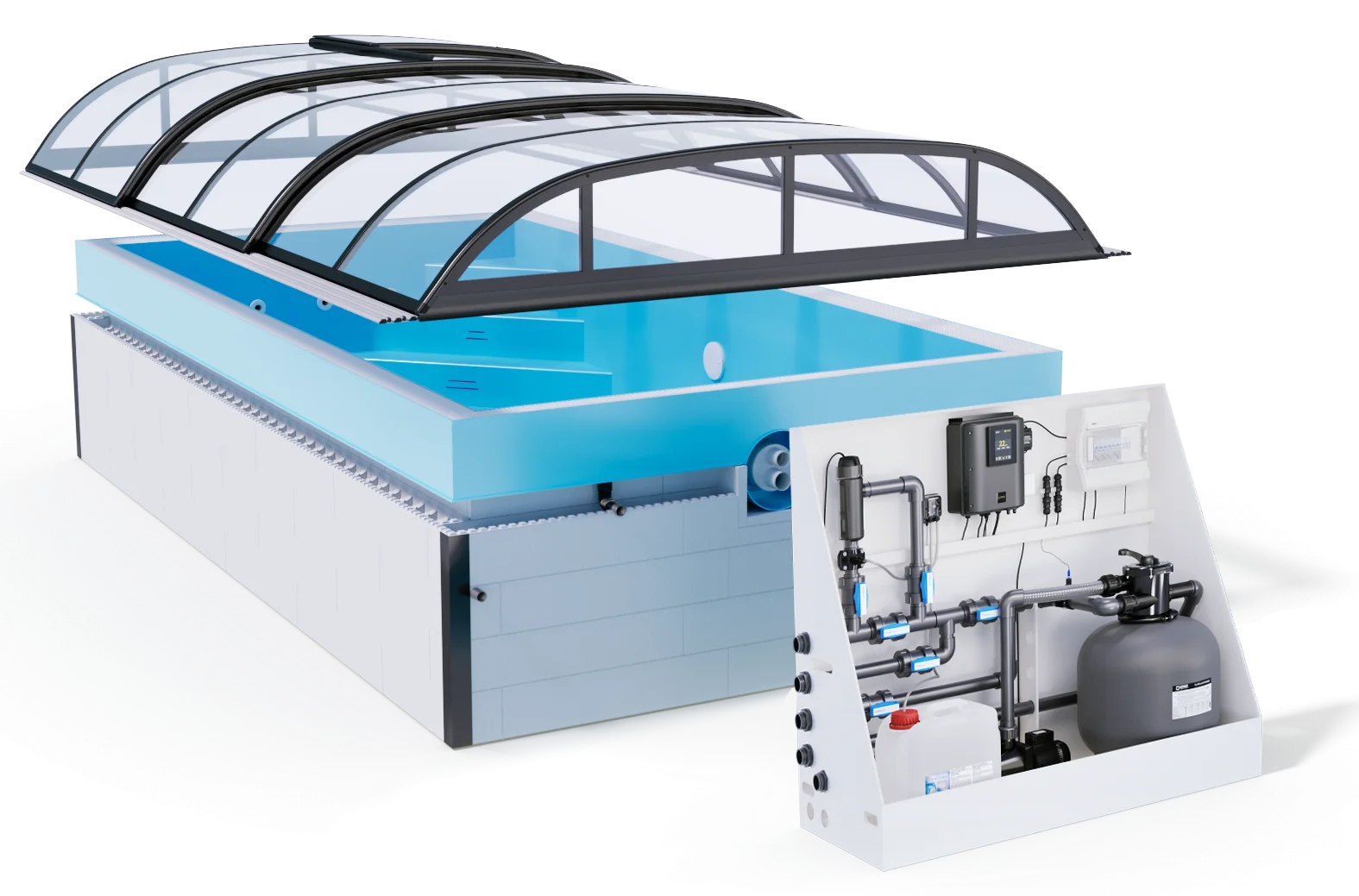 ThermoPP QBIG är en poolkonstruktion som kombinerar fördelarna med termopoolkonstruktionen och PP Pools exklusiva material för att motstå höga vattentemperaturer utan att förkorta livslängden.
