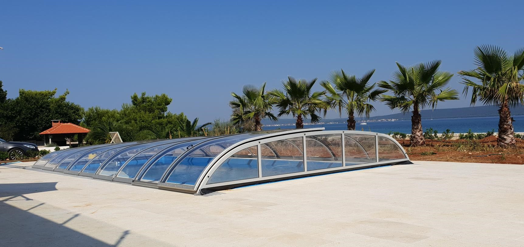 Poolüberdachung NIVO KIT 650B 3×6 (Klarglas, Seitentür)