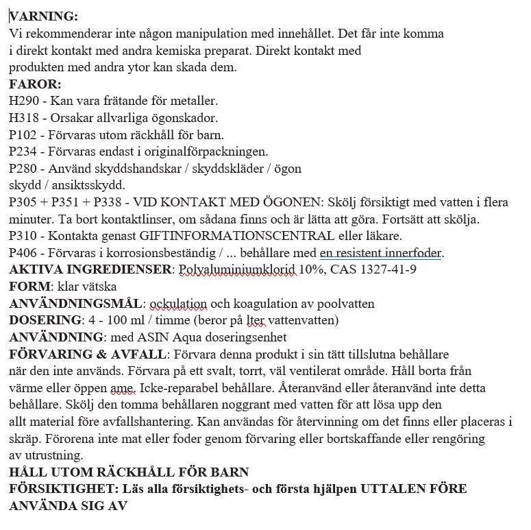 FLOC + C er en yderst effektiv blanding af polymere flokkuleringsmidler og koaguleringsmidler til klaring af poolvand.