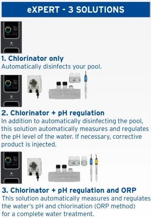 Das umfangreiche eXPERT-Sortiment ermöglicht die Steuerung aller Poolvolumen bis zu 180 m³ und eine langanhaltende Wasserbehandlung dank der robusten und dauerhaften Zelle.